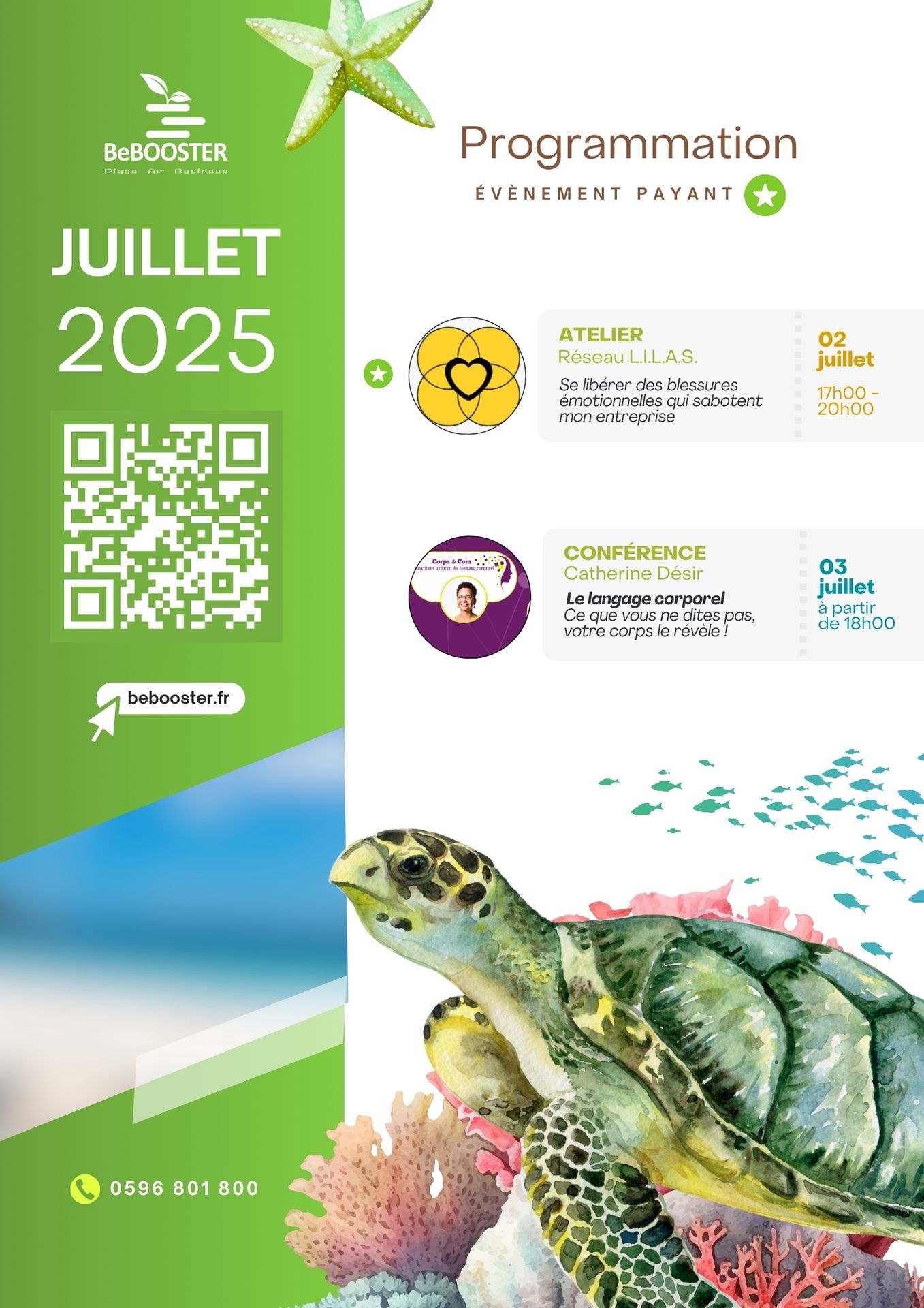 Ce mois-ci, prenez soin de votre bien être à BeBOOSTER et augmentez vos compétences grâce aux ateliers de Juillet.